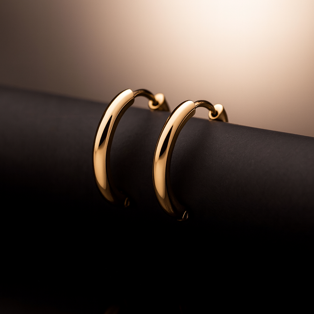 The Classic Hoop Earrings, expertly crafted for timeless appeal. Their smooth, polished finish and balanced size make them versatile for both everyday wear and special occasions. Designed to complement any outfit, these hoops offer a refined yet understated elegance that enhances your look effortlessly.